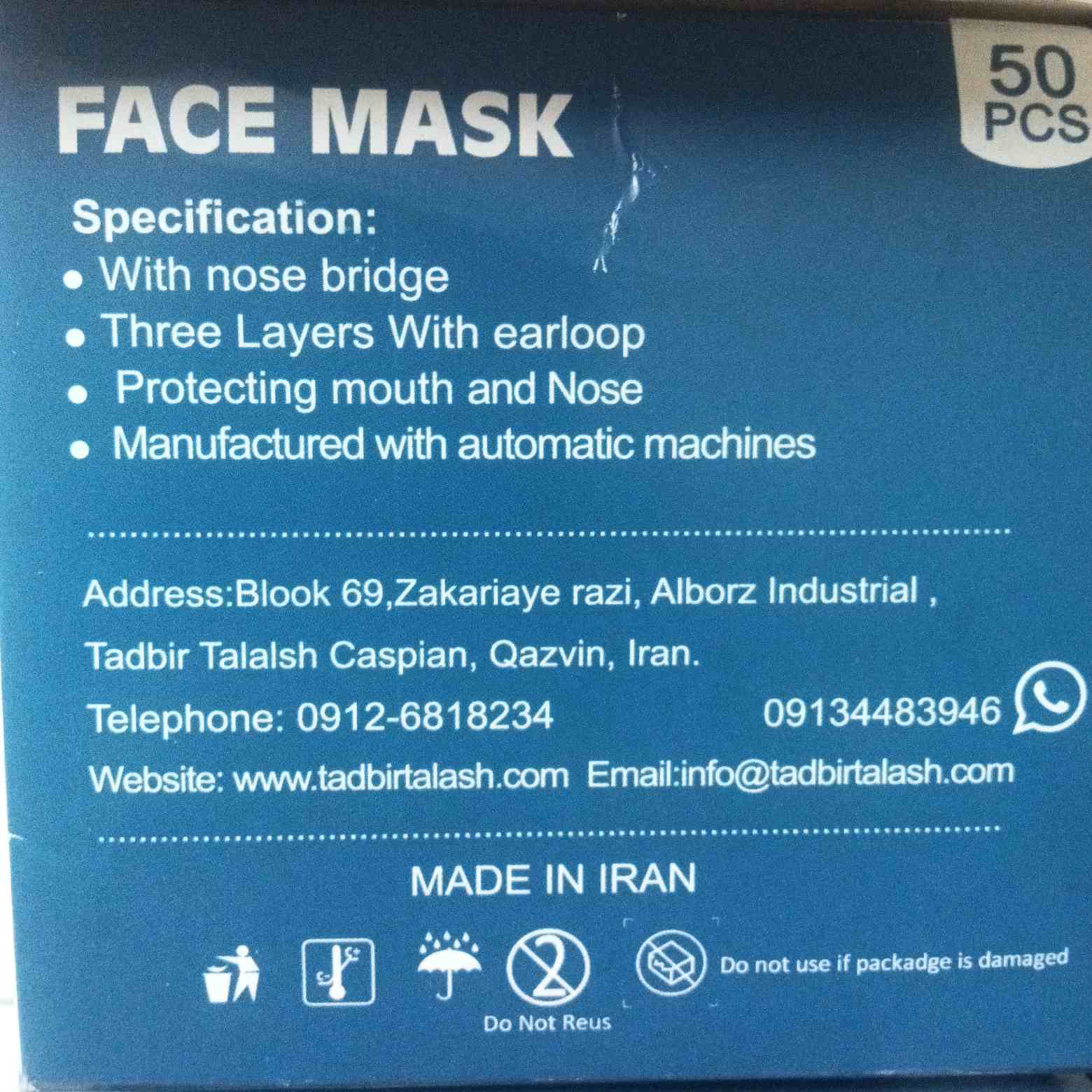 ماسک بهداشتی پرستاری3لایه کاسپین رنگ مشکی