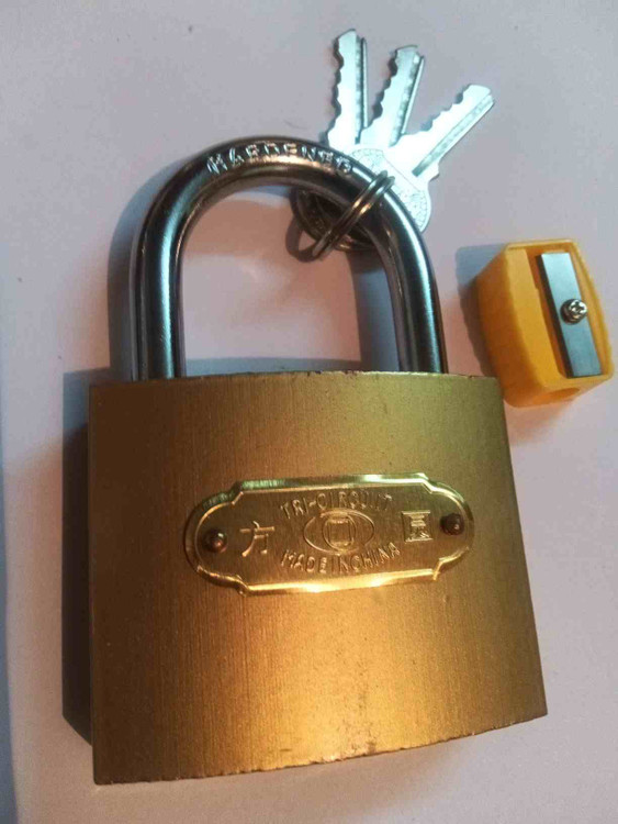 قفل اویز سایز63جنس استیل و فولاد دارای 3کلید زاپاس ساخت کشور چین ، ولی این نوع قفل بیش از 50سال در بازار امتحانش را بابت کیفیت پس داده است ، مناسبت موتور سیکلت و پدال ماشین یا قفل زنجیر ماشین و یا درب پشت بام ، یا انباری محافظ کرکره مغازه و غیره